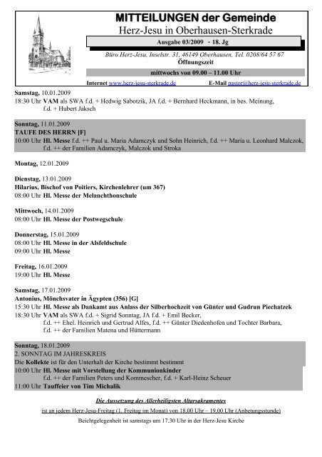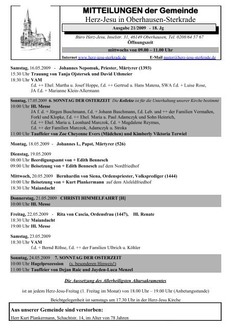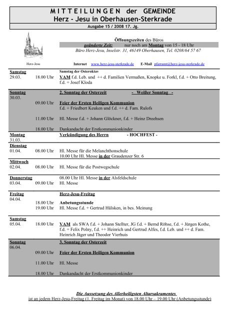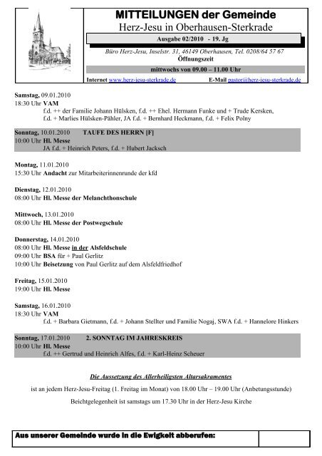 Herz jesu oberhausen gemeindebrief. Diese erfolgt über Listen die im Eingang der Kirche ausliegen. Hauptgegner war Pfarrer Heyden aus Styrum. Es ist jedoch eine Kontaktdatenerfassung notwendig.