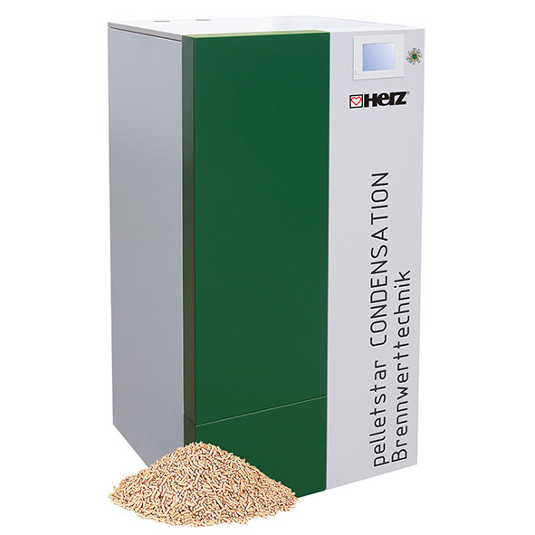 The HERZ-pelletstar 1020304560 established in the market since many years and in operation around whole Europe impresses with its high efficiency easy operation and modern design. For underfl oor heating radiators The HERZ pelletstar CONDENSATION is the ideal solution for new buildings as well as for renovations. The Pelletstar has a modern design and features not only automatic heat exchanger cleaning and an efficient Lambda probe to save on the consumption of fuel by the boiler but now also Herzs newly designed and rigorously tested T-control panelThe Pelletstar is a wood pellet.